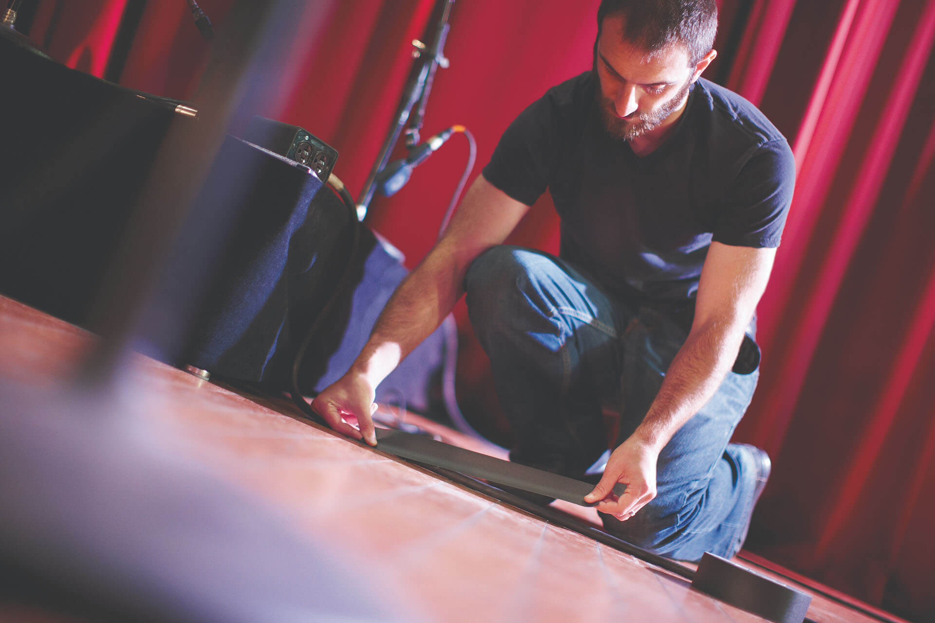 Tapes zijn onmisbaar in de podium- en beursbouw, omdat ze snel, flexibel en schoon kunnen worden gemonteerd en gedemonteerd.